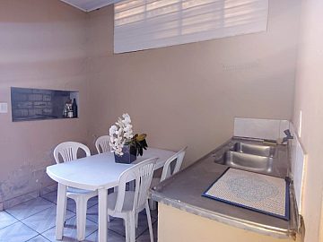 Casa semimobiliada em pequeno condomínio, 01 dorm., pequena sala (opção p + 01 dorm), cozinha e banheiro.